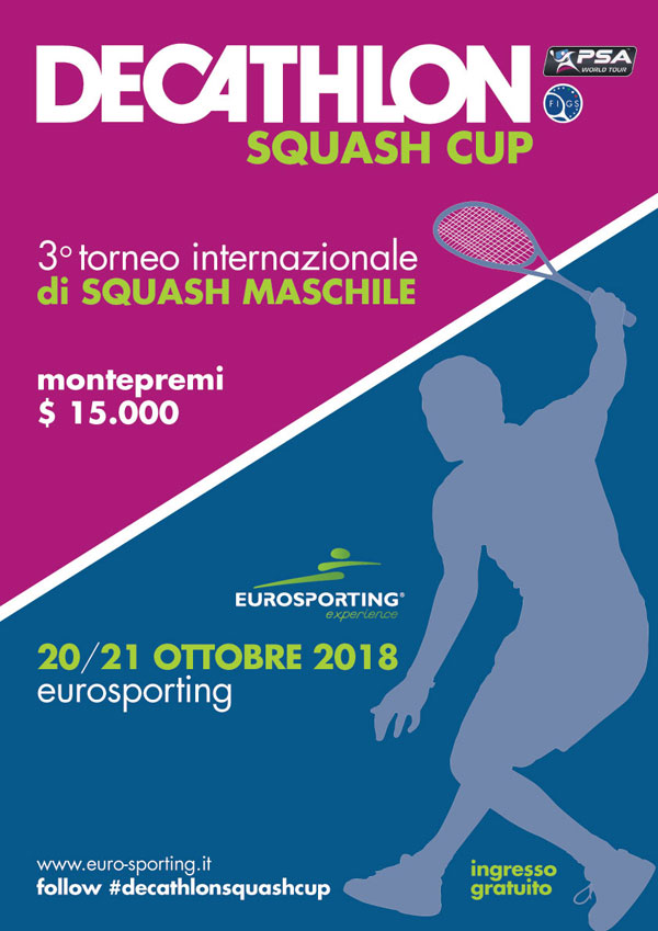 Il 20-21 ottobre, all’Eurosporting ritorna per la seconda volta nel 2018,il grande squash maschile con il 3° torneo internazionale circuito Psa world.
