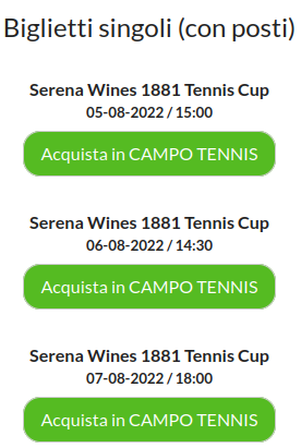 Per accedere agli spalti del Campo Centrale nelle giornate del 5/8, 6/8 e 7/8 in concomitanza con le fasi finali del Torneo, l’ingresso sarà a pagamento.