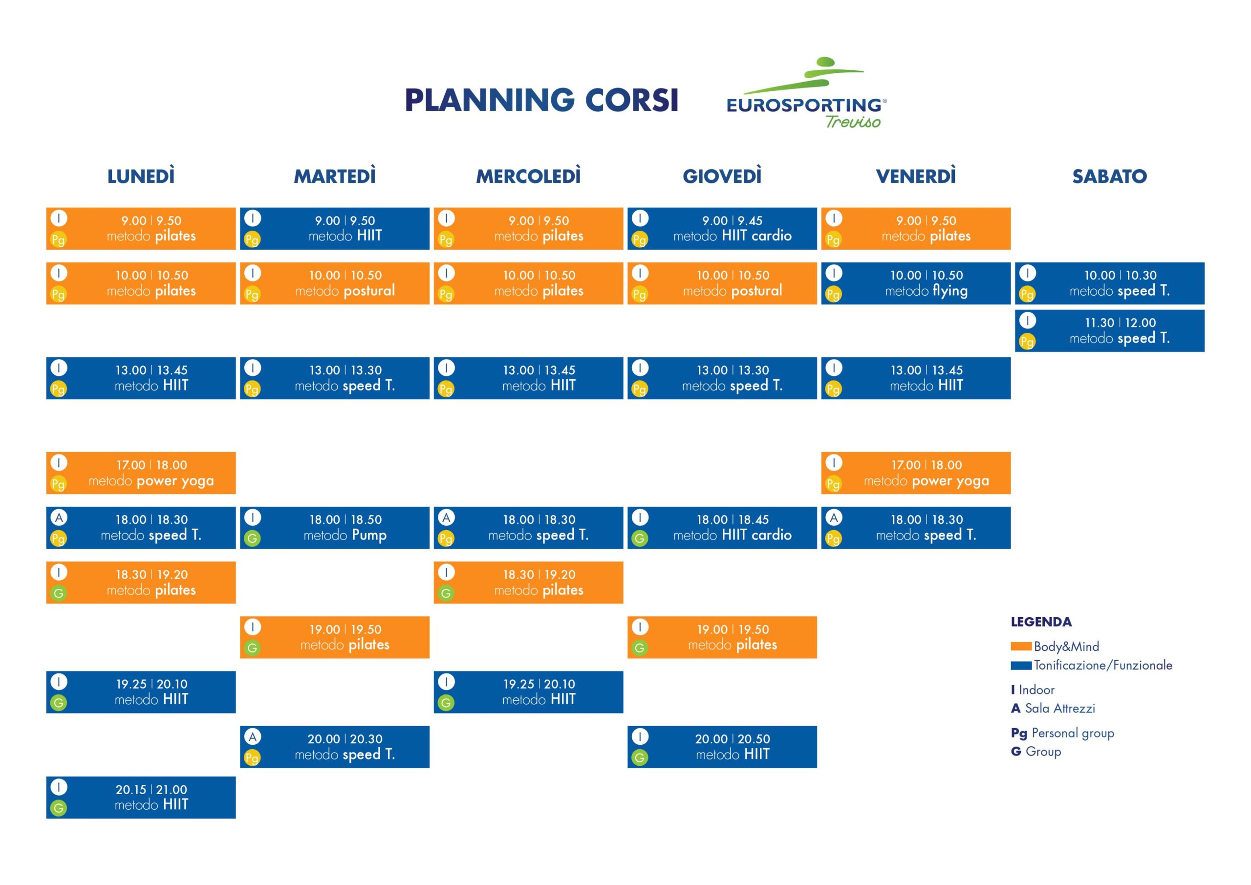 Nuovo planning dei corsi fitness all’Eurosporting Treviso, svelato il calendario.