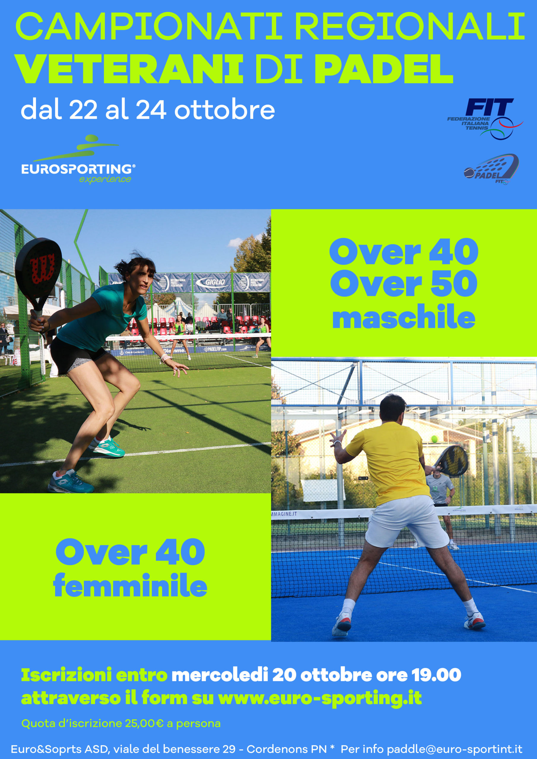 Dal 22 al 24 Ottobre Eurosporting ospiterà i CAMPIONATI REGIONALI DI PADEL VETERANI