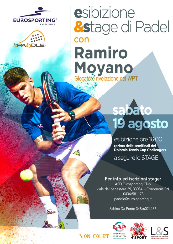 Alle 16.00, prima delle semifinale del challenger Dolomia Tennis Cup, l’argentino Ramiro Moyano farà un’esibizione con ingresso gratuito, insieme ad Aitor Basterretxea, giocatore spagnolo di ottimo livello e due dei migliori giocatori del circuito italiano di padel, Alessandro Cervellati e Filippo Scala .