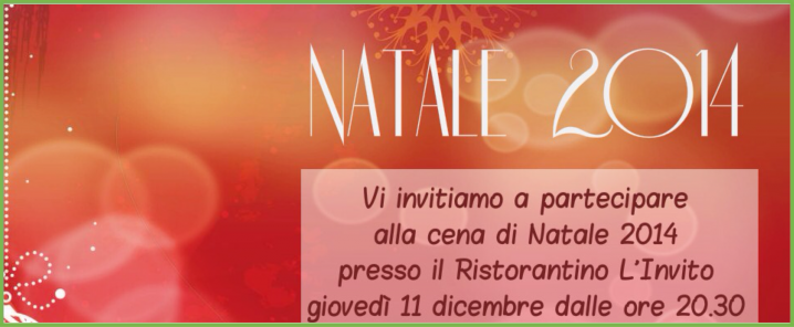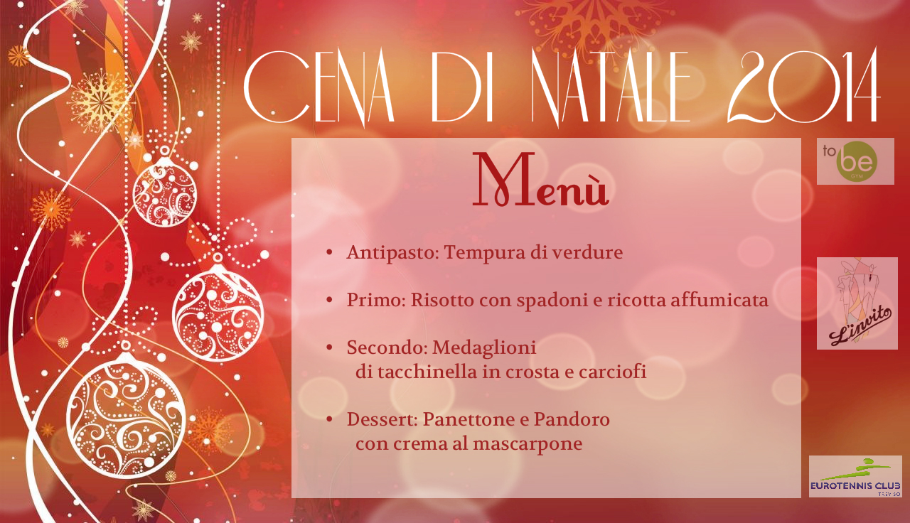 Questa sera ricordatevi la CENA DI NATALE 2014 di Eurotennis Club Treviso e To Be Gym alle ore 20.30 presso il Ristorantino l’Invito.
