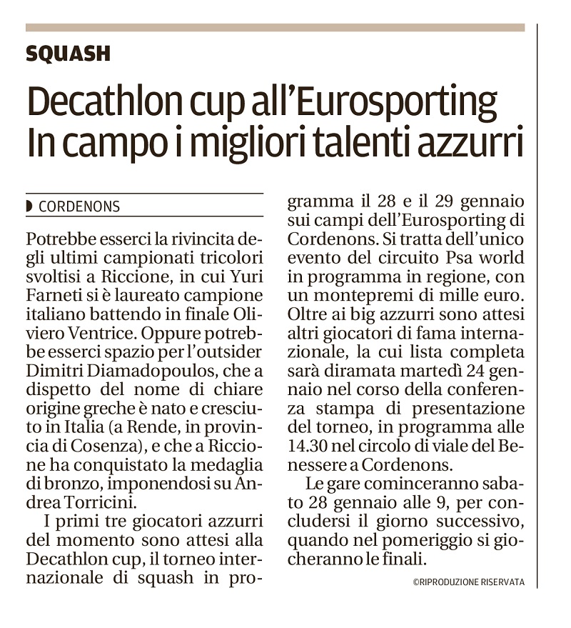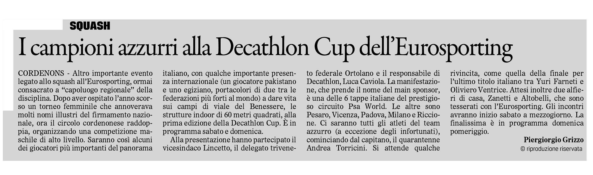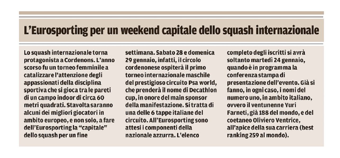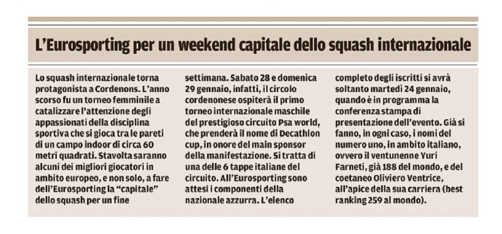DECATHLON SQUASH CUP, LA RASSEGNA STAMPA