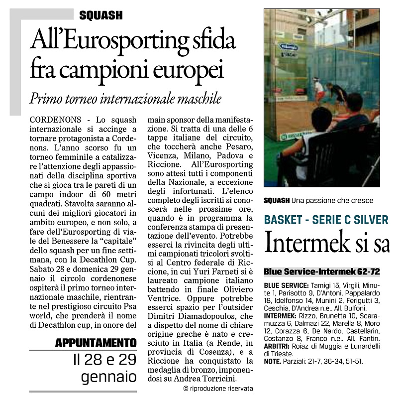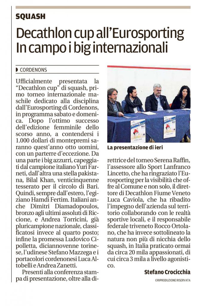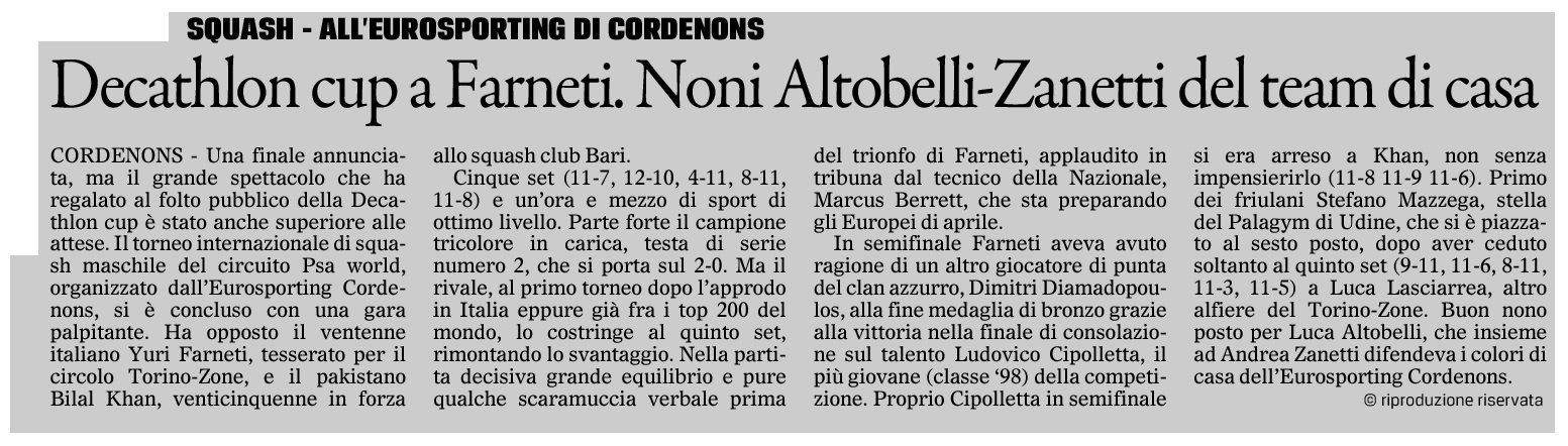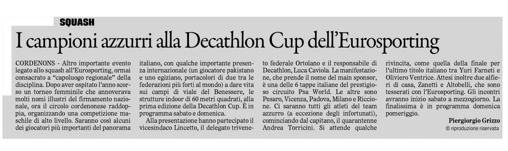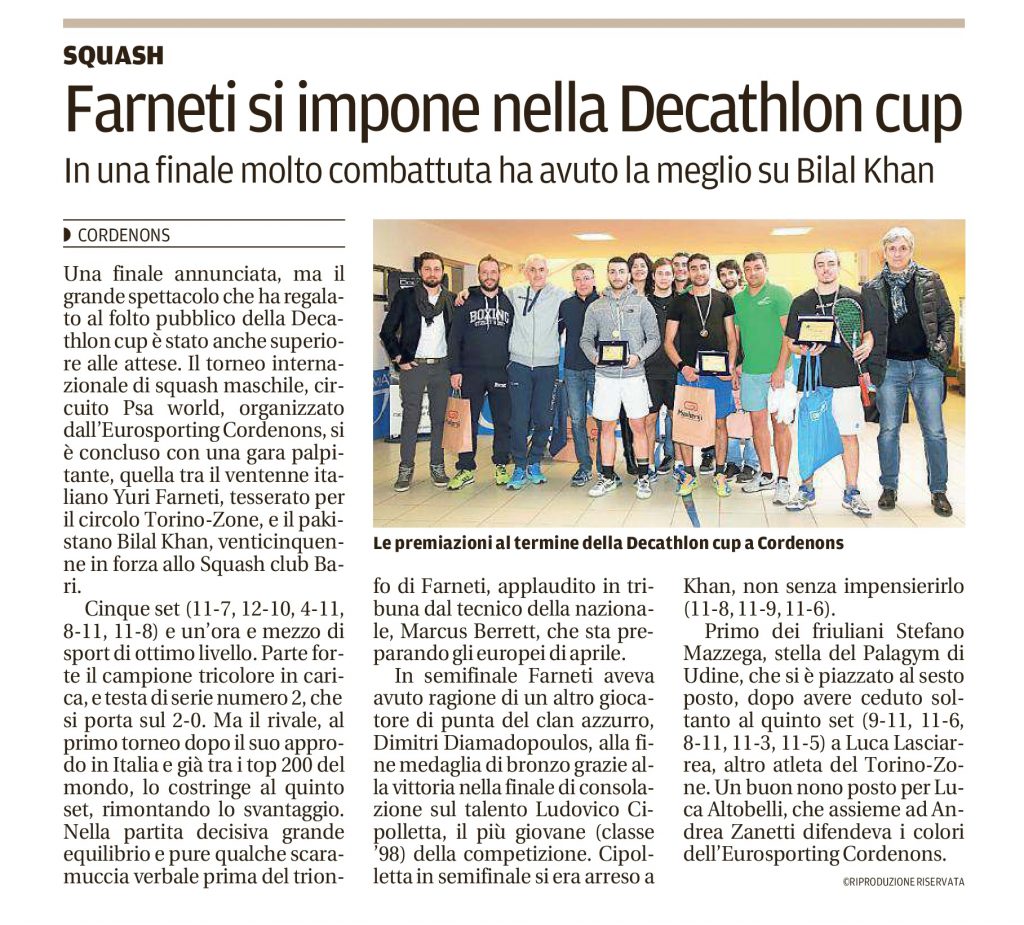 DECATHLON SQUASH CUP, LA RASSEGNA STAMPA