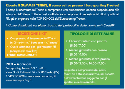 Riparte il SUMMER TENNIS, il camp estivo presso l’Eurosporting Treviso!