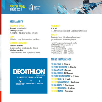 Info e PRENOTAZIONE POSTI IN TRIBUNA da www.euro-sporting.it/fip-star-padel-2021