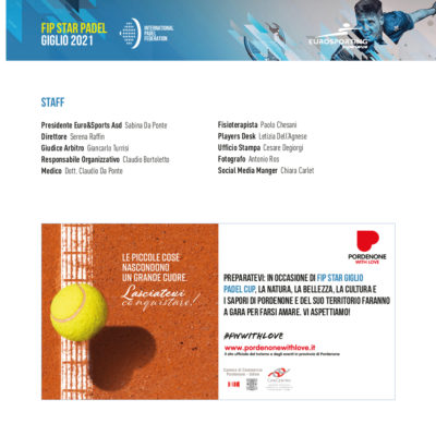 Dal 6 al 10 ottobre si svolgerà infatti sui nuovi quattro campi da padel dell’Eurosporting il Fip Star Padel Giglio 2021, uno dei quattro eventi internazionali (che assegna punti per il World Padel Tour) in programma nell’autunno italiano della disciplina sportiva che sta facendo appassionare milioni di praticanti in tutto il mondo. Il torneo, tra i più prestigiosi disputati in Italia e secondo per importanza soltanto alla categoria “Fip Gold”, potrà contare su un prize money di 10.200 euro (6.000 euro per il tabellone maschile e 4.200 euro per il tabellone femminile con ospitalità). Tra le coppie più attese al via, non si può fare a meno di sottolineare la presenza alle latitudini friulane, del binomio spagnolo Antonio Fernandez Cano – Jose Antonio García Diestro (n.40 della classifica World Padel Tour), che promette di sciorinare spettacolo dal primo all’ultimo colpo sui campi dell’Eurosporting. Di rilevanza internazionale anche la presenza in tabellone di due binomi provenienti da Spagna e Qatar: Raúl Marcos Durán – Mohammed Saadon Alkuwari e José Jiménez Casas – Mohammed Abdulla. Già iscritte nel tabellone 10 coppie italiane, tra cui l’intrigante binomio famigliare formato da padre e figlio Alex e Marcelo Capitani, con quest’ultimo Direttore Tecnico della nazionale under maschile italiana nonché giocatore della nazionale maggiore.