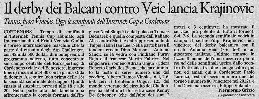 Il derby dei Balcani contro Veic lancia Krajinovic Tennis: fuori Vinolas. Oggi le semifinali dell’Intermek Cup a Cordenons.