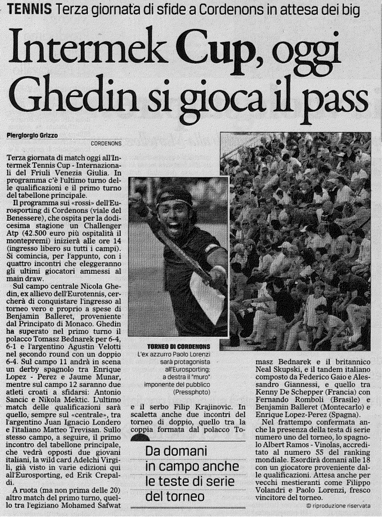 Intermek Cup – Oggi Ghedin si gioca il pass Intermek Cup, oggi Ghedin si gioca il pass. Terza giornata di sfide a Cordenons in attesa dei big.