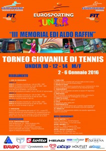 I TABELLONI e gli ORARI di gioco saranno pubblicati sul sito www.euro-sporting.it a partire da Venerdì 1 GENNAIO alle ore 19.00.