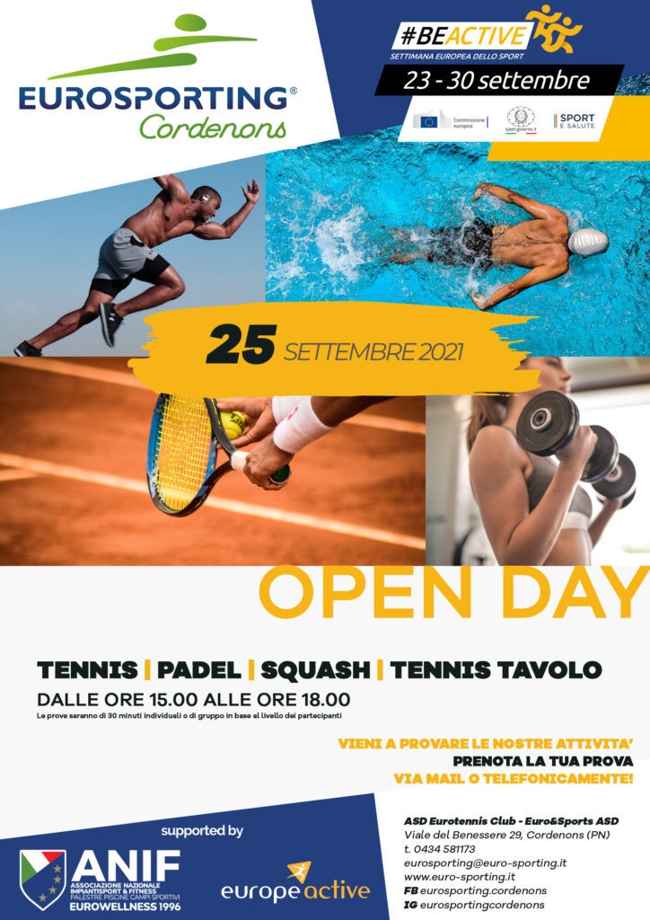 Sabato 25 settembre Eurosporting Cordenons propone un OPEN DAY dalle ore 15.00 alle ore 18.00 dove sarà possibile provare tutti gli sport di racchetta con maestri qualificati.