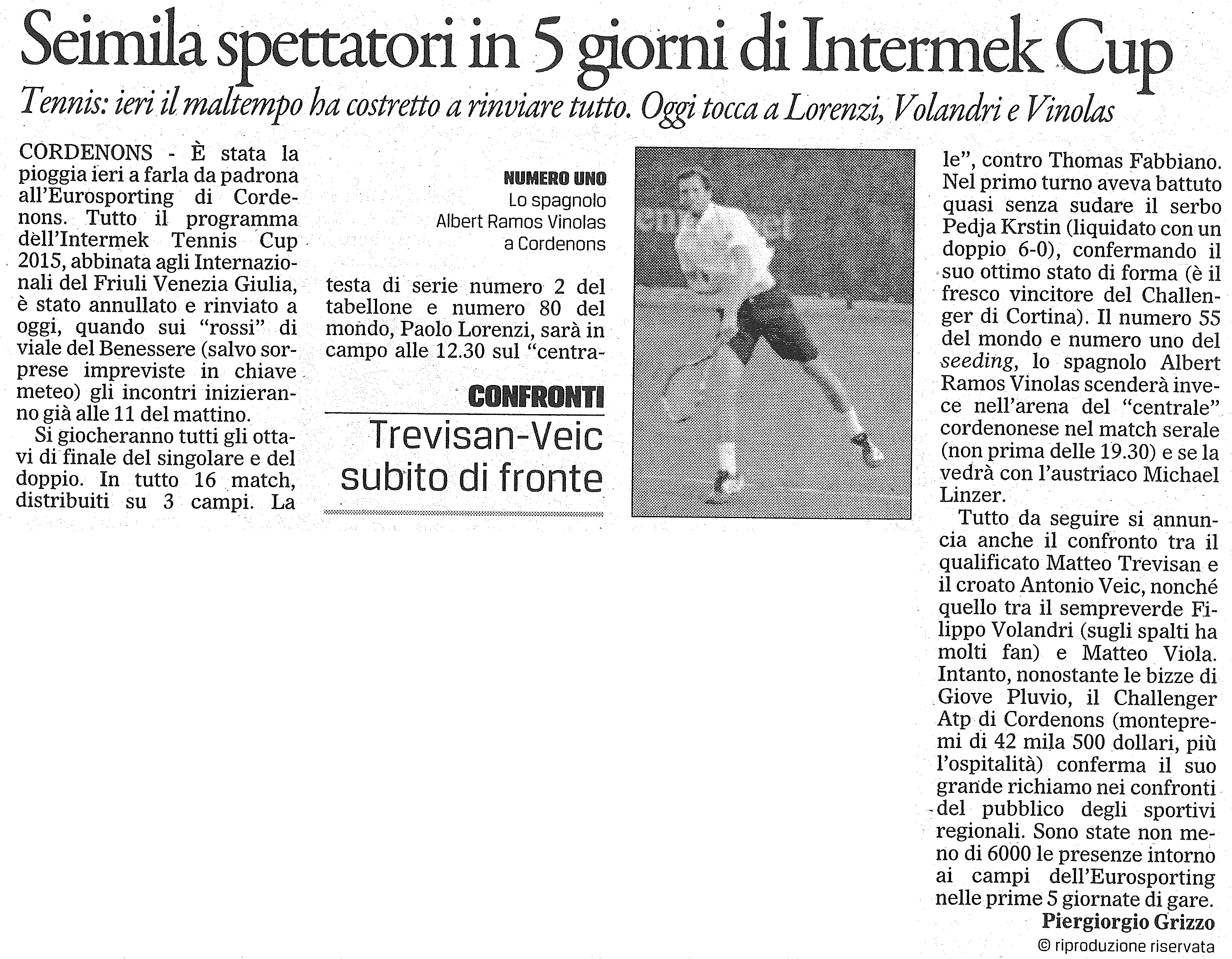 Seimila Spettatori in 5 giorni di Intermek Cup Tennis: ieri il maltempo ha costretto a rinviare tutto. Oggi tocca a Lorenzi, Volandri e Vinolas.