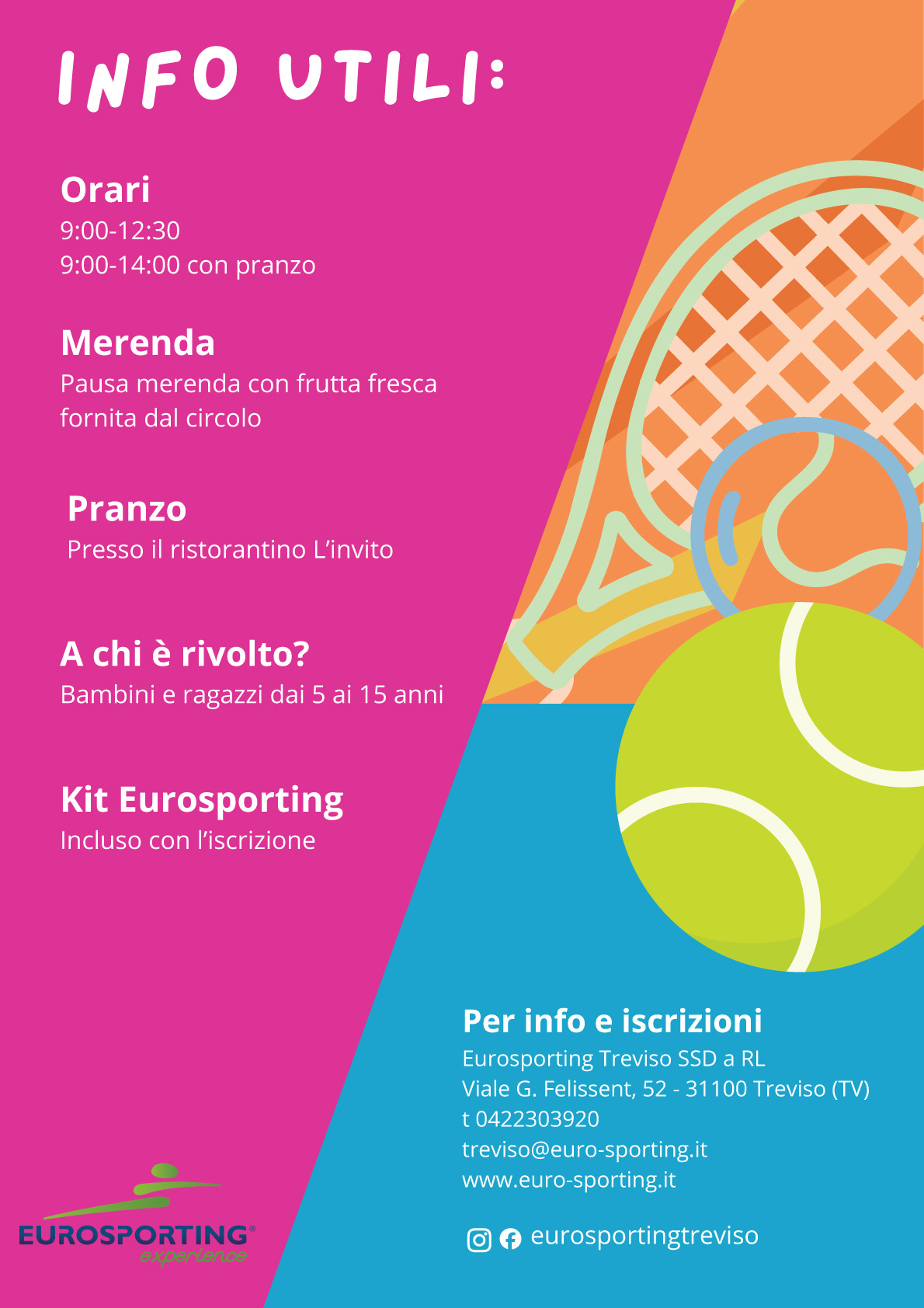 Tennis Camp estivo 2026 / dal 8 giugno al31 luglio EUROSPORTING TREVISO