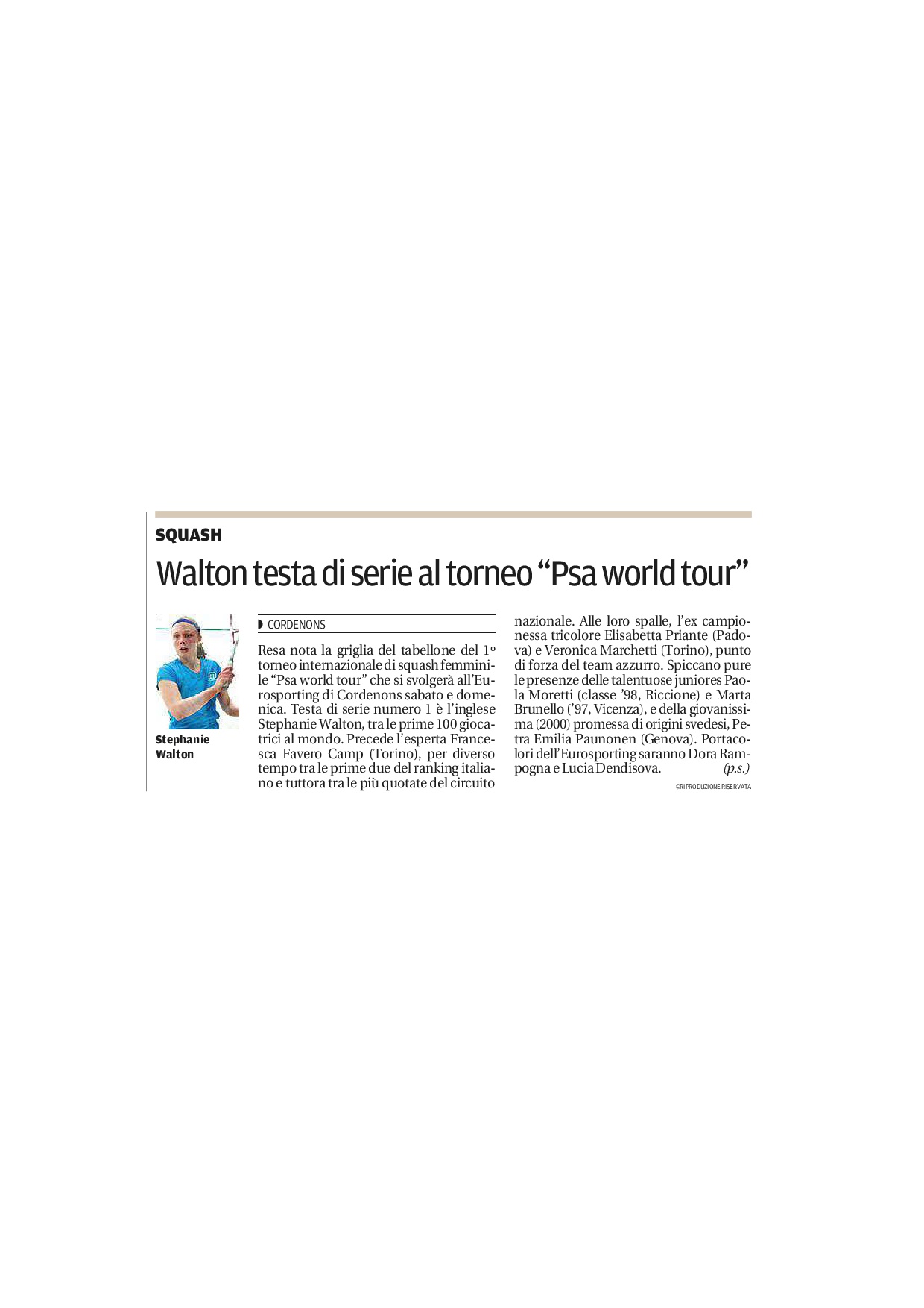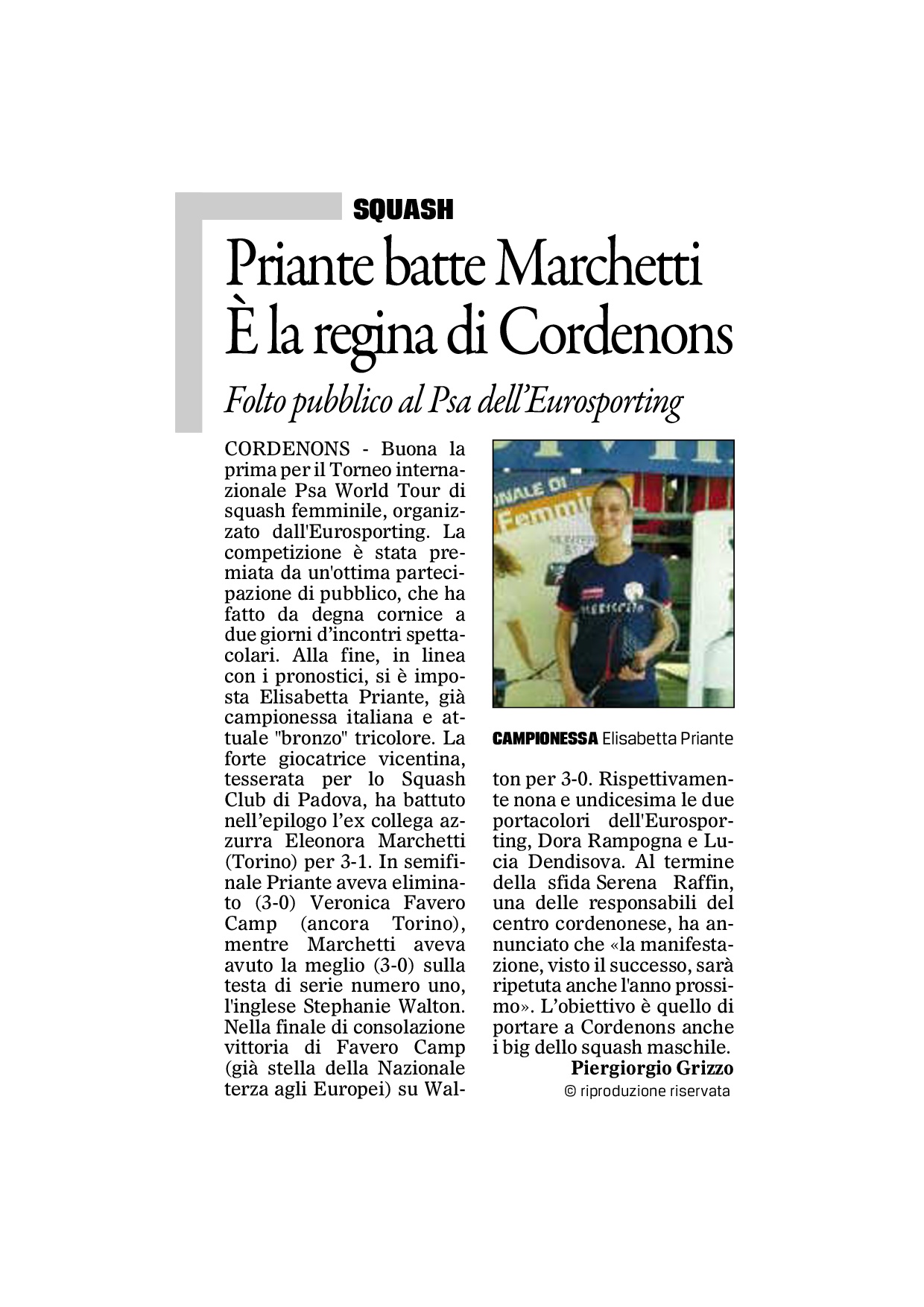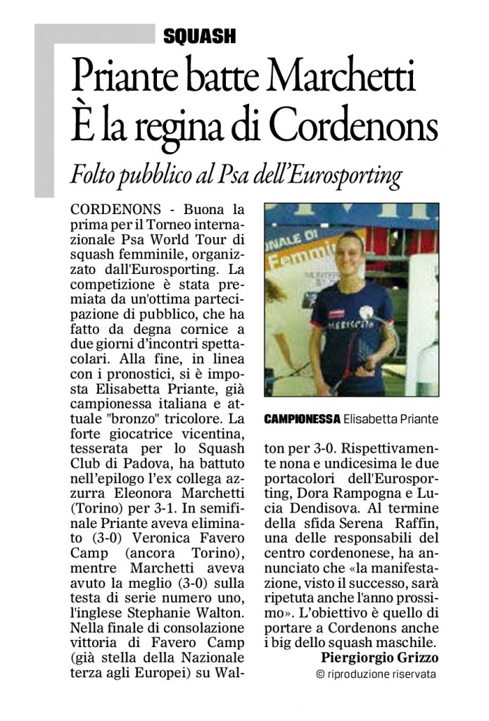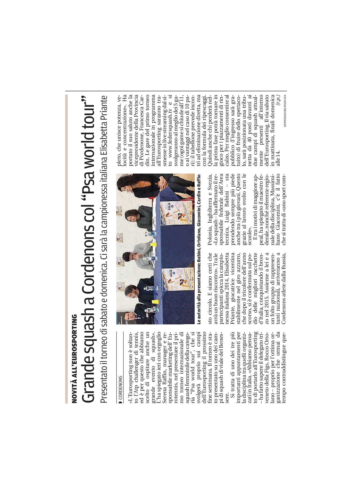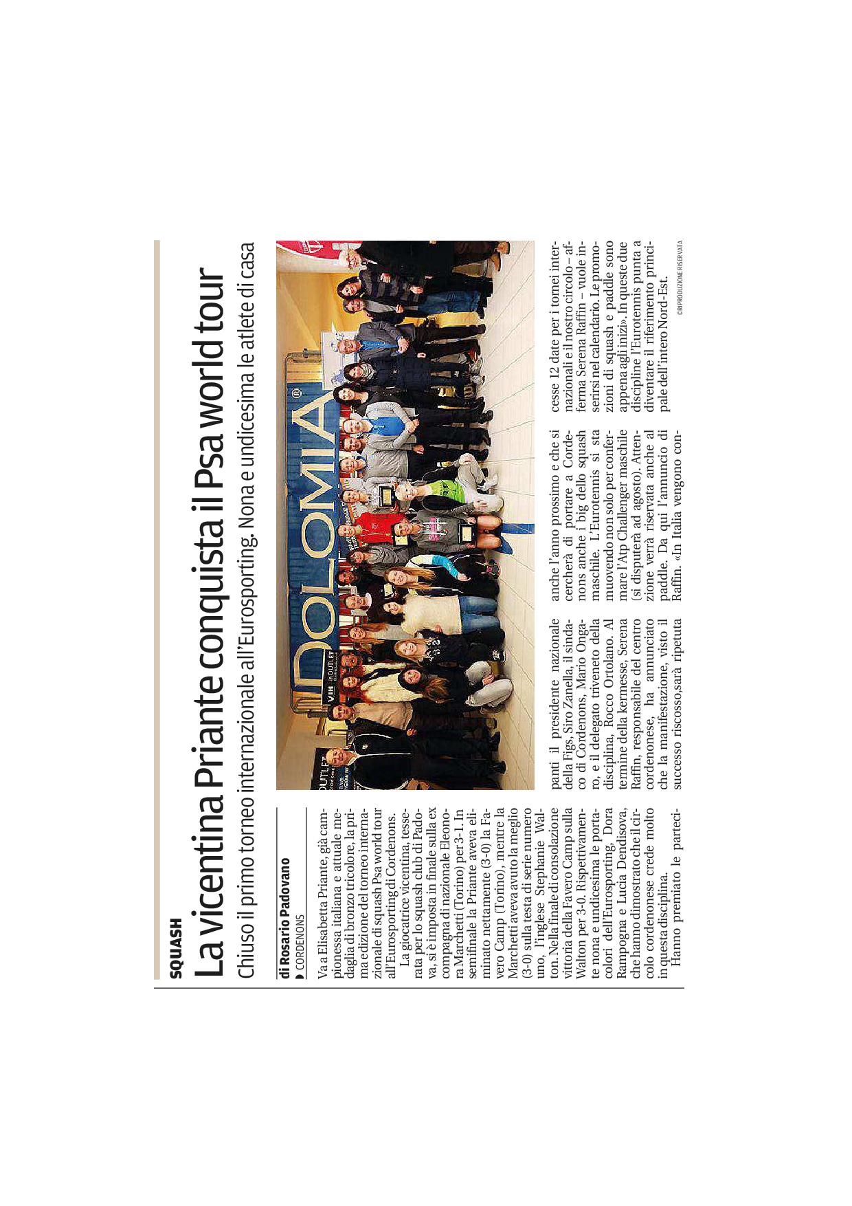 Il primo torneo internazionale femminile di squash “PSA WORLD TOUR” organizzato all’Eurosporting di Cordenons il 23-24 gennaio 2016 si è fatto leggere…: