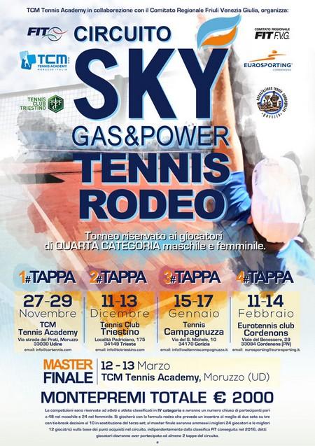Le migliori racchette regionali della quarta categoria (non superiore a 4.1) si contenderanno da domani a domenica la quarta tappa del Circuito Rodeo maschile e femminile, targato “Sky gas&power” all’Eurosporting di Cordenons. Quella ospitata dal circolo di viale del Benessere è l’ultima data prima del master finale in programma il 12 e 13 marzo a Moruzzo. In precedenza si è giocato proprio nella sede del galà conclusivo, a Trieste e a Gorizia.