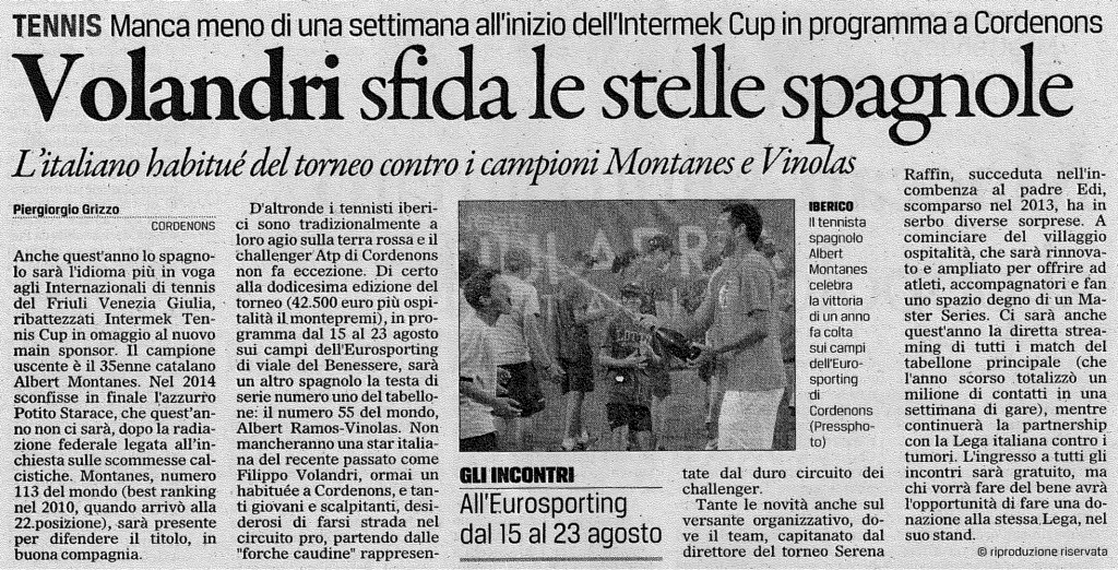 Volandri sfida le stelle spagnole Manca meno di una settimana all’inizio dell’Intermek Cup in programma a Cordenons. L’itlaiano habituè del torneo contro i campioni Montanes e Vinolas.